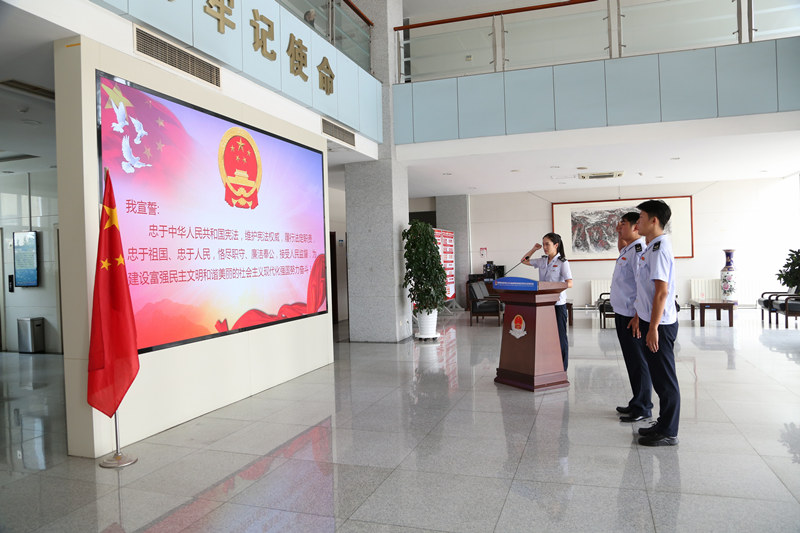 为进一步增强新录用公务员的宪法意识、法制观念和执业使命感,近日,青岛自贸片区税务局举行新录用公务员宪法宣誓仪式。