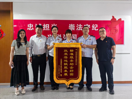 近日,中译语通科技(青岛)有限公司负责人专程来到高新区税务局,将一面印有“精准服务助企纾困,政策落地赋能发展”的鲜红锦旗送到税务干部手中。这份由衷的赞誉,源于税务部门在高新技术企业认定后续管理工作中为企业提供的精准导航与坚实支撑。