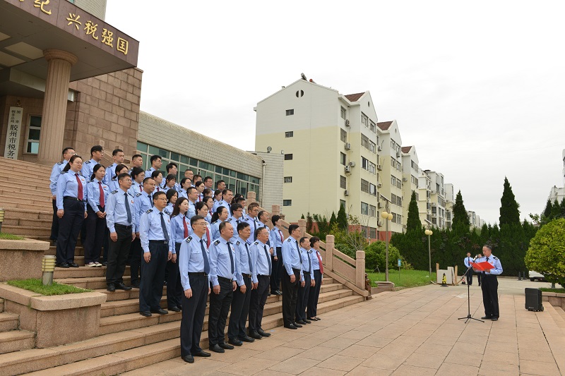为庆祝中华人民共和国成立76周年,进一步激发全体税务干部的爱国热情与使命担当,10月9日上午,胶州市税务局在滕州路办公区大楼前举行升国旗仪式。局领导、局内各单位主要负责人及青年理论学习小组代表参加本次活动。