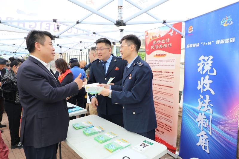 为精准服务社区经济,税务青年主动走访周边摊点、零售商户,定制化推送“粽情税意”政策礼包,确保税费红利直达市场主体。同时,结合民法典宣传月主题,创新推出“税法+民法”双普法模式,通过案例讲解引导商户树立依法经营、诚信纳税意识,实现法治宣传与便民服务的深度融合。