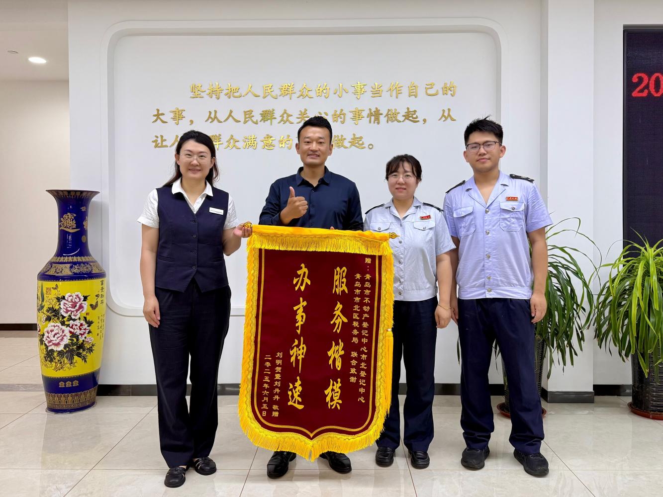 日前,纳税人刘先生将一面印有“服务楷模”的锦旗送至市北区税务局,对不动产登记中心税务窗口工作人员的敬业负责和耐心服务表达谢意。