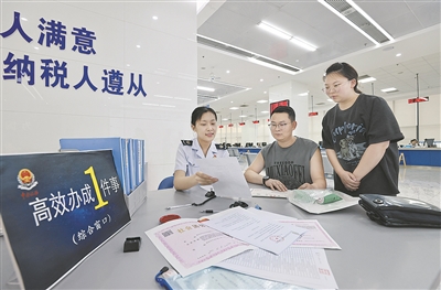 今年以来,国家税务总局青岛市市北区税务局在各办税厅持续优化“高效办成一件事”专区功能,科学优化办税流程,不断创新服务内容和方式,切实提升纳税人缴费人的办事体验和满意度。图为工作人员正在解答纳税人提出的涉税问题。