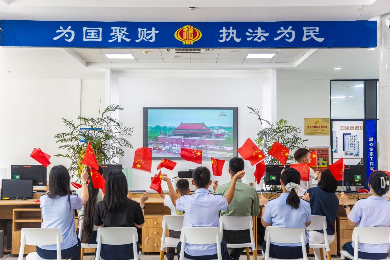 9月3日上午,纪念中国人民抗日战争暨世界反法西斯战争胜利80周年阅兵式在北京天安门广场隆重举行。天安门广场阅兵气势如虹,国家税务总局平度市税务局办税服务厅内掌声阵阵。税务人员与纳税人缴费人齐聚一堂,共同观看这场展现国家强大国防力量的盛大阅兵直播。在这场为期约70分钟的阅兵活动直播过程中,平度市税务局将观看阅兵式与税收普法教育相结合,开展“强国有我 强军有我”专题税收普法活动,用国家盛事点燃爱国热情。